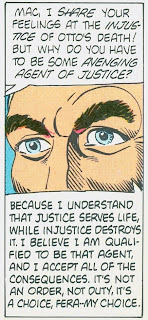 If we look at Ditko's independent comics in the period, we find a real diversity of text/image ratios. In many ways, page 5 from EM #2 is an exception, that like Ditko's text-minimalist pages (e.g. 1985's "The Expert"), demonstrates the considerable attention he paid to the issue.