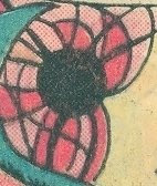What's that big black ink area in the lower corner? Is it intentional or a Charlton printing error? [It oddly extends below the plane of the panel borders into the margin.] Either way, it fits with the abstract strangeness of the images.