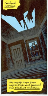 The way that artist Kelley Jones designs the white spaces on some of the pages functions in concert with Madsen’s color schemes. Jones uses a lot of white space and large gutter-like areas to ensures that all of the elements of the layout are easily read. And the pages often have an "airy" and open feel, a look that's surprising in a comic that uses so many horror tropes: