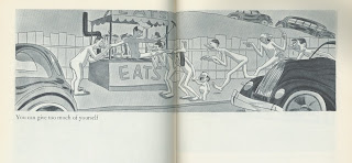 I use quotations from the notebooks in an essay on Dean in Comic Art #9, but on the blog today (and in the next few weeks) I will post cartoons and writing from Dean that did not appear in that essay. [Dean's text is in italics below, in part because it's in cursive in the notebooks -- click images to enlarge.]